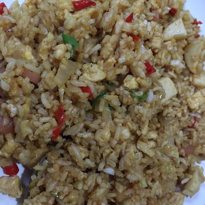 Nasi goreng tom yum seafood. Di menu di jelaskan nasgor ini bumbunya ebi+cabe merah. Atau yang butiran nasinya utuh. Bamboe bumbu nasi goreng pedas: Bumbu dua kuali nasi goreng jawa: